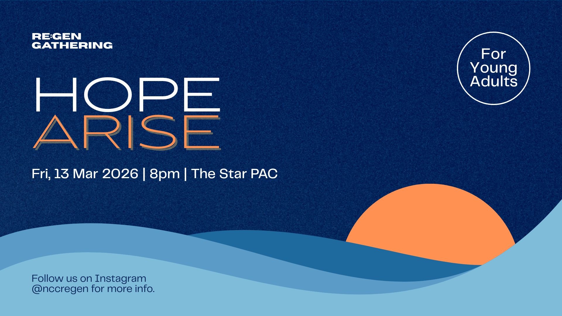 Re:Gen, our young adults community, will be coming together for our upcoming Re:Gen Gathering on 13 March 2026, 8pm at The Star Performing Arts Centre!